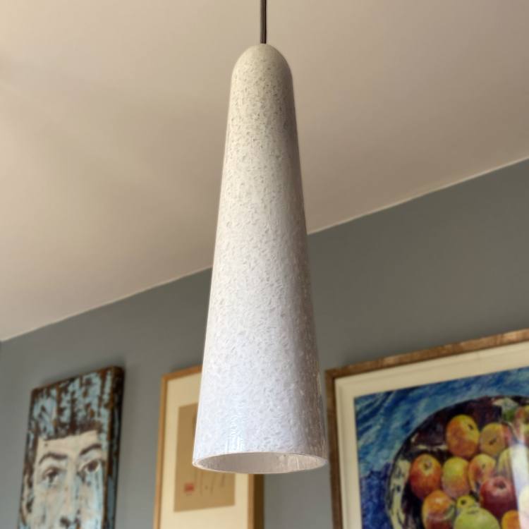 This pendant is hand made in the UK from remade, a new 70% recycled acrylic, which is also fully recyclable. All That Glows uses white remade acrylic to deliver a form that looks like something between ice and marble. It is a truly stunning decorative pendant and a beautiful product from recycled waste.