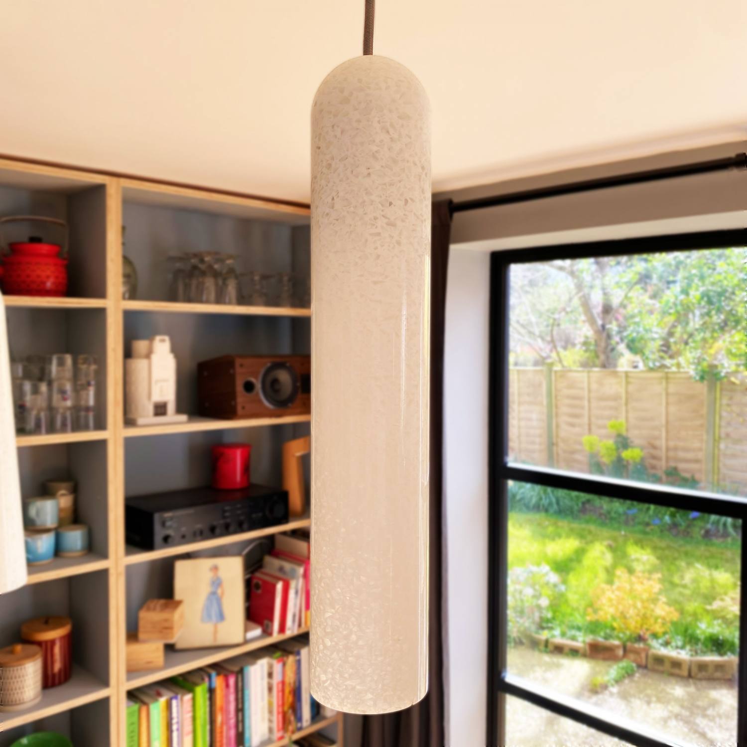 This pendant is hand made in the UK from remade, a new 70% recycled acrylic, which is also fully recyclable. All That Glows uses white remade acrylic to deliver a form that looks like something between ice and marble. It is a truly stunning decorative pendant and a beautiful product from recycled waste.